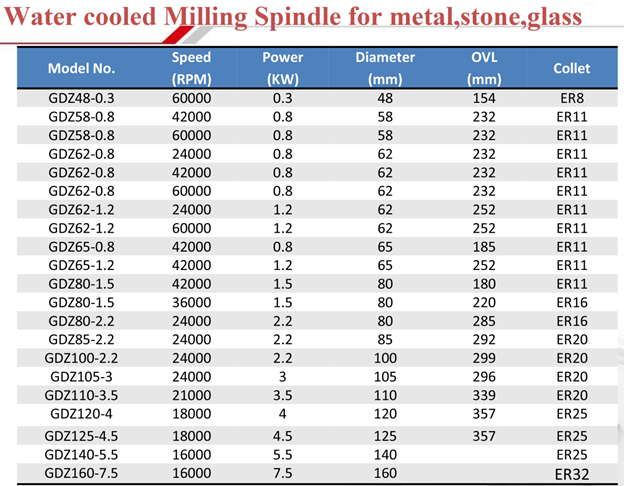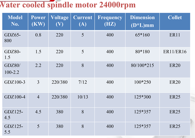 Water cooled spindle motor 24000rpm